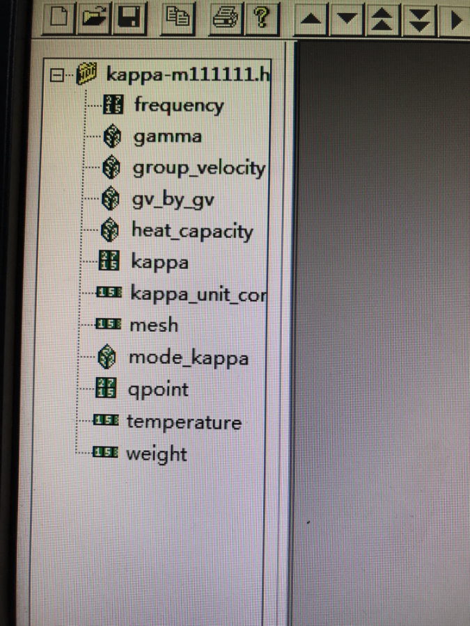 利用phono3py 计算晶格热导率,得到了kappa-m111111.hdf 5,打开后的文件如图,其中包含热导率张量,请问300K时的热导率是需要自己用公式计算,还是可以直接在文件中读出,希望各位大神能帮忙回答一下,小女子不胜感激。 发自小木虫IOS客户端 |