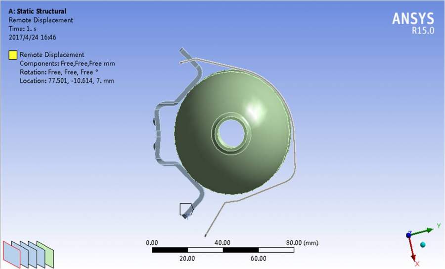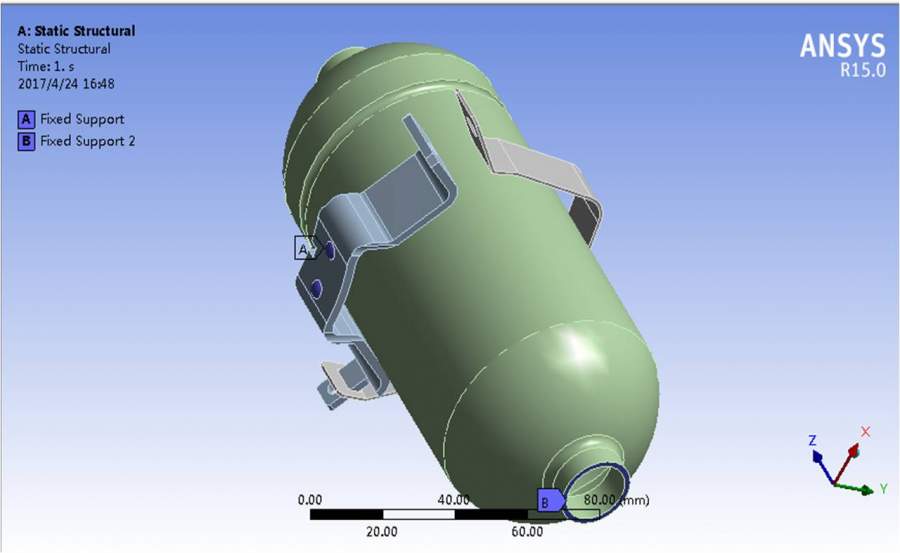本人刚刚接触ansys,有些问题显得有些弱鸡,还望请大家不要嘲笑。金币不多,还请不吝赐教。谢谢 大家~ 想模拟把储液罐用卡子安装在支架上,观察应变情况。(图上没有添加螺钉) 现在不知道怎么把卡子约束到支架上使他们接触(卡子需要变形),还有怎么设置卡子的和储液罐的接触情况。还有后续怎么添加螺钉到已经接触的安装孔处。 |