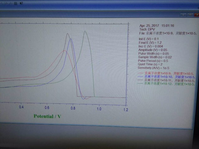 适配体传感器用DPV测1×10-9至1×10-12的汞离子浓度,灵敏度设置1×10-5曲线出现直角,灵敏度设1×10-4,出现两个峰一个大峰旁边出现一个小峰,设置1×10-6,曲线就会从中间断开,求解!拜托了 发自小木虫IOS客户端 |