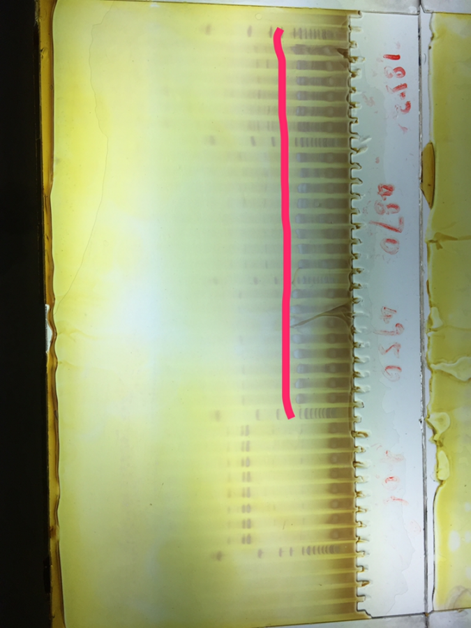 各位大神们这是我做的用PAGE进行的引物多态性筛选试验 为啥会出现一下这种情况(用红线标出)万方感谢各位大神 发自小木虫IOS客户端 |