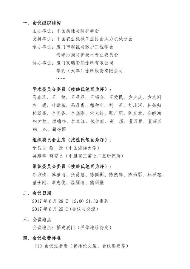 2017海洋装备腐蚀防护及先进海洋涂层技术研讨会 (第一轮 通知)