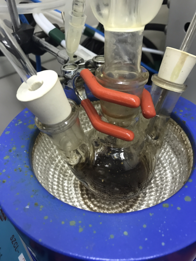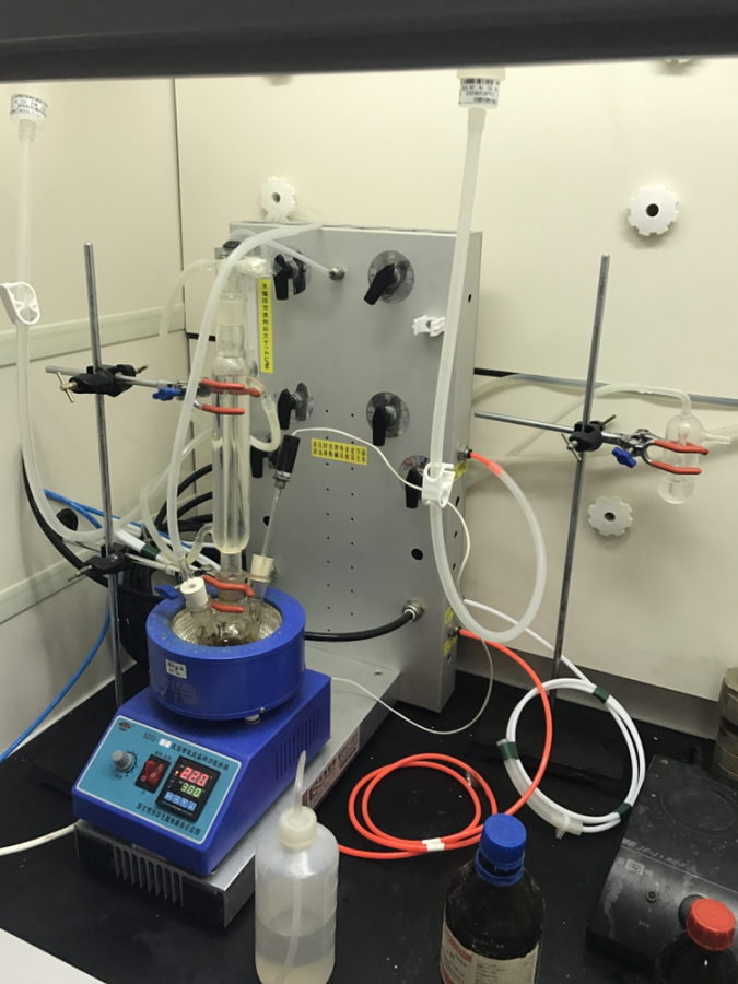 嗯,中间是冷凝管…用的是张勇的合成方法,通的是氩气……