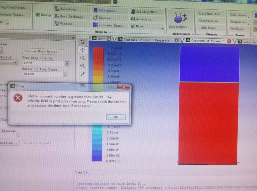 如图,左侧加热,上方为压力出口, 蓝色部分为空气,设置成第二相。红色为密度随温度变小的水,第一相,现在想看加热后水的体积变化,但是总是出现图中错误,请问是怎么回事啊。 所有金币都拿出来了。 发自小木虫Android客户端 |
