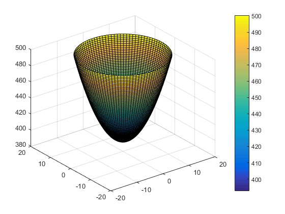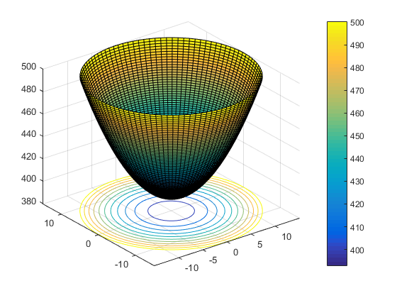 matlab三维图形绘制题目 z=393+(x^2+y^2)*107/225,其中x=r*sina,y=r*cosa,r取值(0,15),a取值(-π,π)。 要求:画出三维曲面图或者带有等高线的三维曲面图。怎么写? |