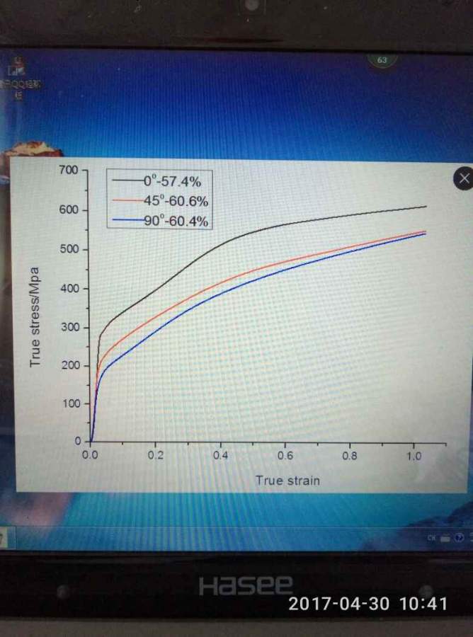 如何解释曲线的变化?或者有没有相关解释的文章,单轴压缩,与ND方向成0 45 90度的应力应变曲线 @comma @wacky1980 发自小木虫Android客户端 |