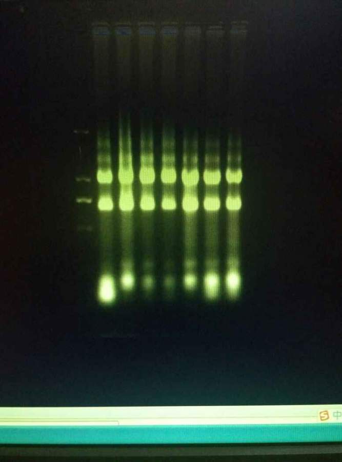 浓度貌似太高了,建议稀释后再跑胶看看,条带应该更清晰 发自小木虫Android客户端 |