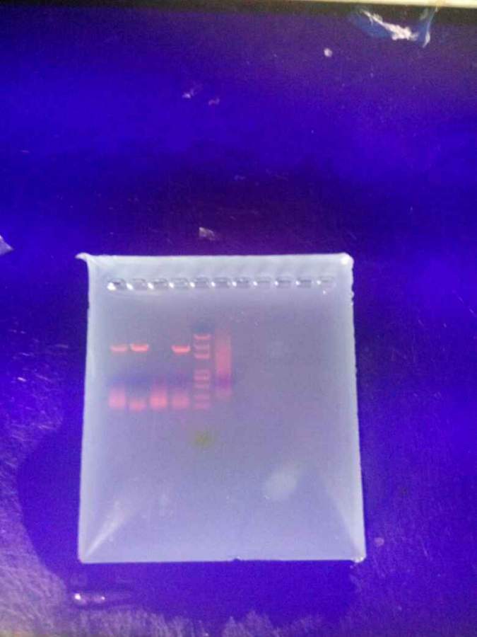 PCR后进行跑胶,出现这种条带是怎么回事,我设计的引物在基因的上下游,如果这个水稻自交系里面没有这个基因扩出来了会是怎么样的条带,设计引物时产物为2700bp,这五个都是水稻,不过是不同的品种。 发自小木虫Android客户端 |