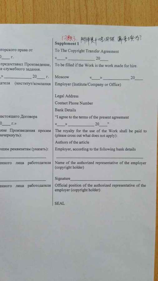 投了一个俄罗斯的期刊,初审要上传版权协议,有几个地方不太懂,求大神指导 发自小木虫Android客户端 |