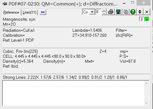 求助:PDF卡片07-0230 Mn+2O 这个是什么物质?谢谢!