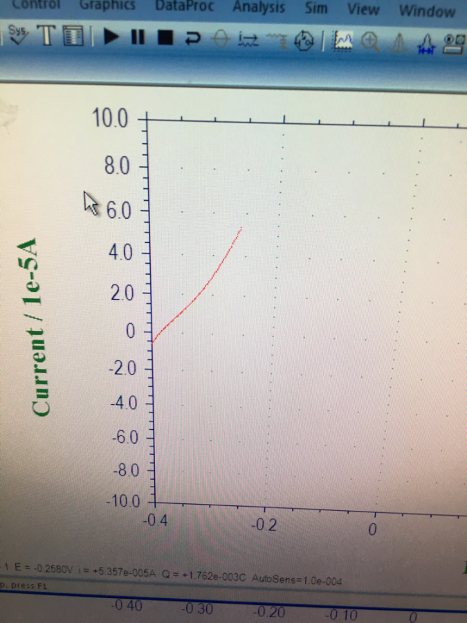 检查你的工作电极是否有问题,包括电极与引线的接触,引线是否浸泡在溶液中。严格标准测试,应该将工作电极封装,暴露出可测面积的部分。