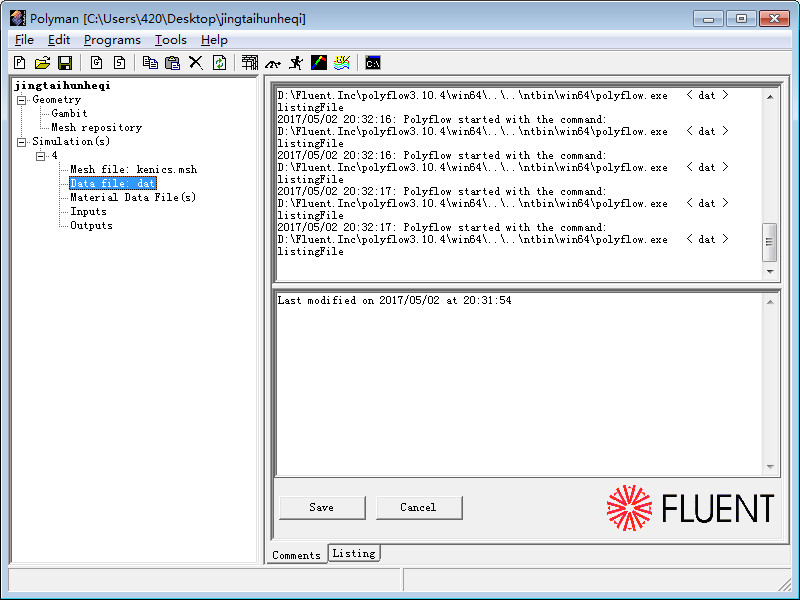 在polyflow中导入了mesh文件,然后按照步骤进行设置,在运行到最后的时候点击save and exit 之后,可以显示出dat文件,但是没有办法接着运行polyflow,请问各位大神这是什么情况? [MC2)JY5[%N3]IN[1_]8`GR.png |