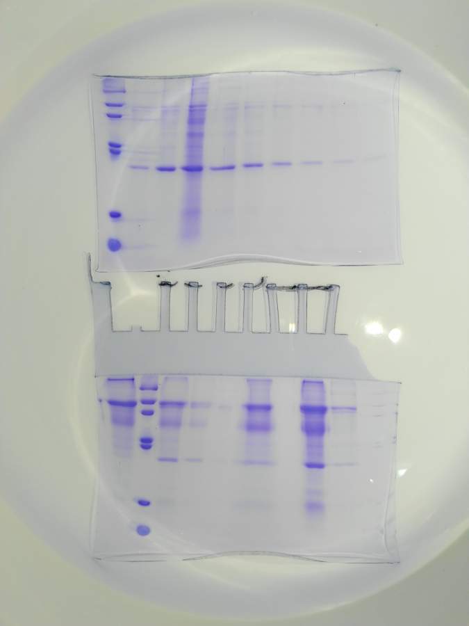 本人是做布尼亚病毒纯化,之前跑的层析液GP蛋白在60KD左右,这次跑的在70kd上面一点了,再次取上次跑电泳的层析液样品和这次的一起跑胶,结果都在70左右有条带,Mark比对过没问题,请问各位有什么影响因素会导致这样的结果? IMG_20170427_155716.jpg |