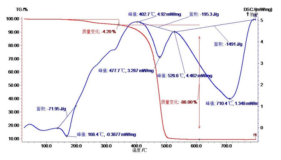 求大神帮忙简单分析差热和热重曲线