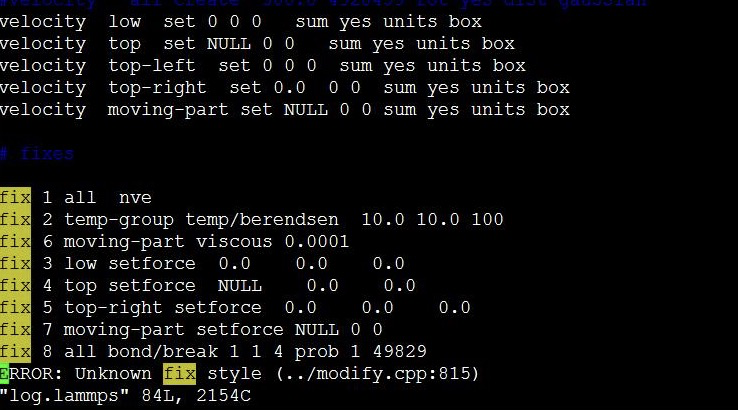 使用fix bond/break命令的时候需要MC软件包 进入src文件中 用make yes-MC 然后mpi 显示是安装上了 但是fix bond/break 任然无法运行,显示Unknown fix style 有遇到过这个问题吗 求大神指导怎么解决? 发自小木虫IOS客户端 |