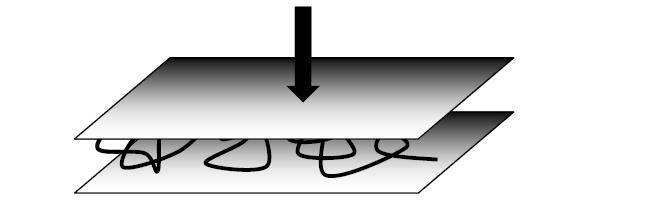 A flexible linear polymer of degree of polymerization N and radius of gyration Rg is strongly squeezed in a good solvent between two infinite plates, i.e., trapped within a slit of thickness H much less than Rg. What is the polymer’s 2-dimensional radius of gyration Rg,2D? This parameter is the polymer’s coil size as viewed in projection through the slit, as sketched below. Specify values for exponents relating Rg,2D to both N and H. 123.jpg@bionics |