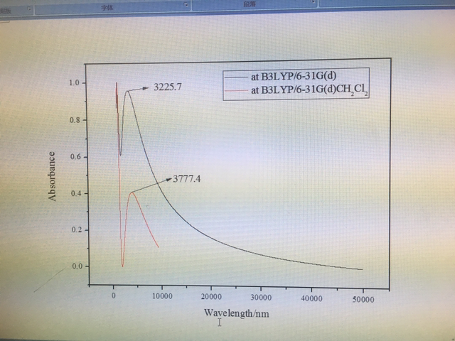 各位大神帮帮忙,为什么我如图物质通过Gaussian 计算后得到紫外光谱的波长那么大,已经算了两次,都是很大,什么原因呢? 发自小木虫IOS客户端 |