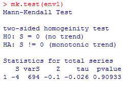 求助R语言做Mann-Kendall趋势性检验的结果解读已有1人参与