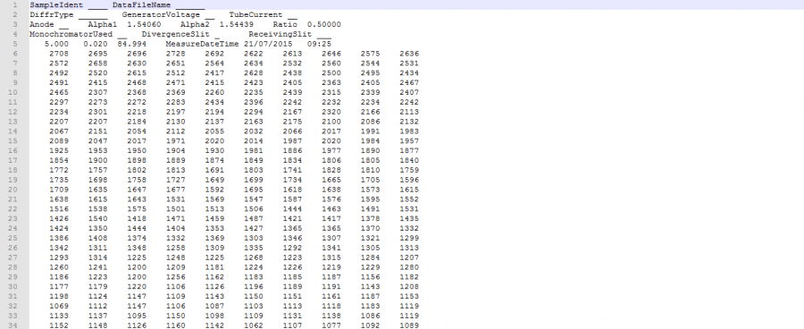 ! 2Th1/TOF1 2Th2/TOF2 Pattern to plot
