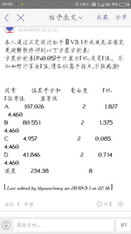 方差分析中知道f比,求f值 发自小木虫Android客户端 |