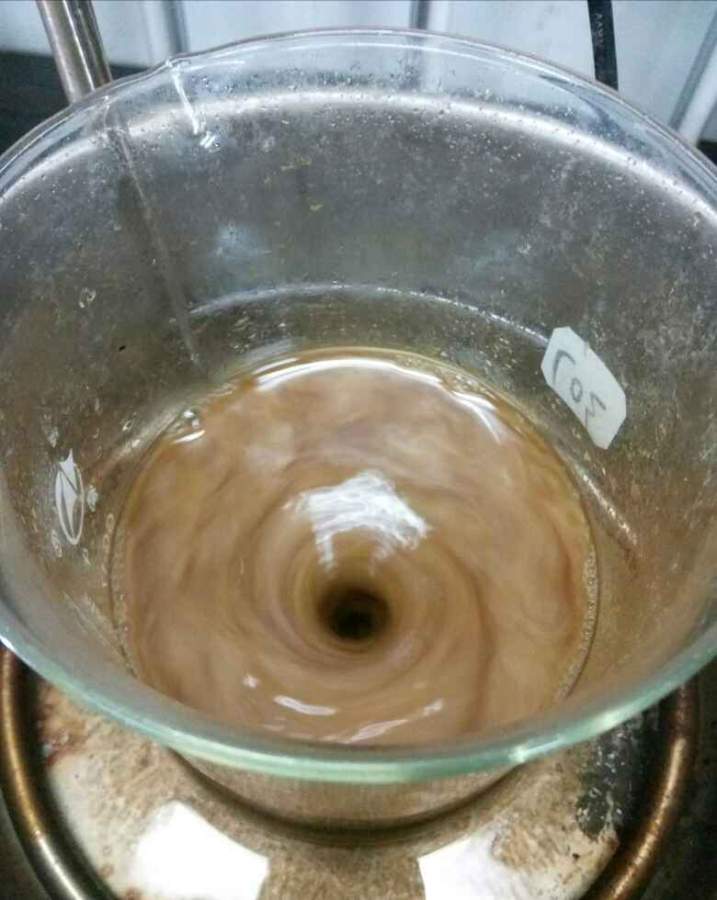 如图,制备的溶液颜色不均匀是什么造成的怎么改善?谢谢!