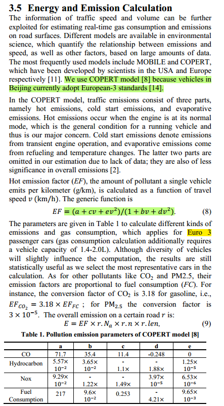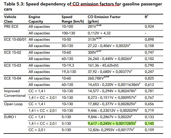 有没有大神指导COPERT III中的排放因子怎么计算的? 我查了COPERT手册中的表格,以CO为例,排放因子的表格在图1中。但是我初步计算了一下,发现结果差别很大,在另一篇COPERT的论文中发现了计算排放因子的方法,用这个方法得到的结果更加准确(图2中的表格)。可是我不知道图2中的表格是怎么来的, 请问大家怎么得到 图2中的排放因子结果的? Fig1.png Fig2.png |