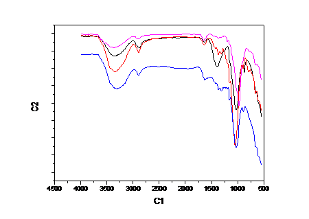 做了纤维素中添加了活性炭、硅胶粉和凹凸棒土制成了复合膜。现在做了红外要分析,有大神会分析吗。最上面是加凹凸棒土的,往下依次是加硅胶粉,纯纤维素,加活性炭的,求帮忙啊