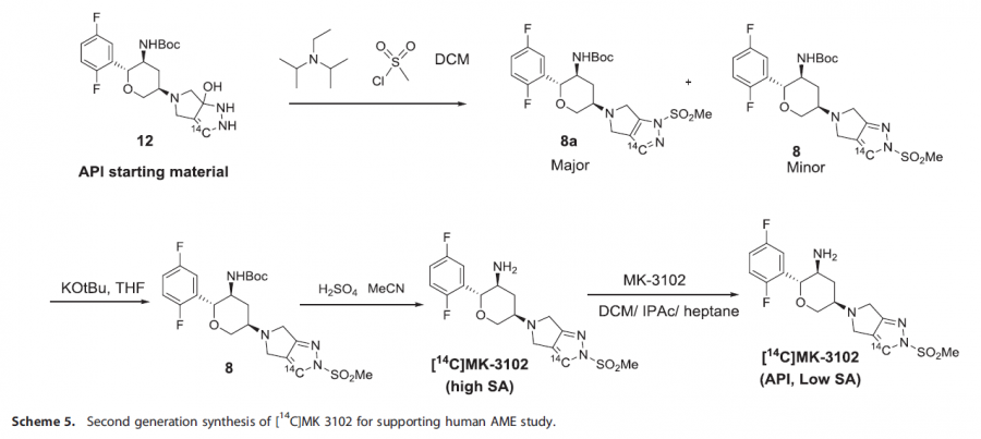 From:Ren, S., et al. (2016). "Synthesis of [14C]omarigliptin." Journal of Labelled Compounds and Radiopharmaceuticals 59(10): 386-390. 2222.png |