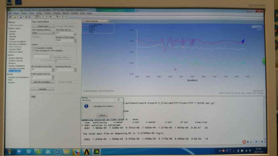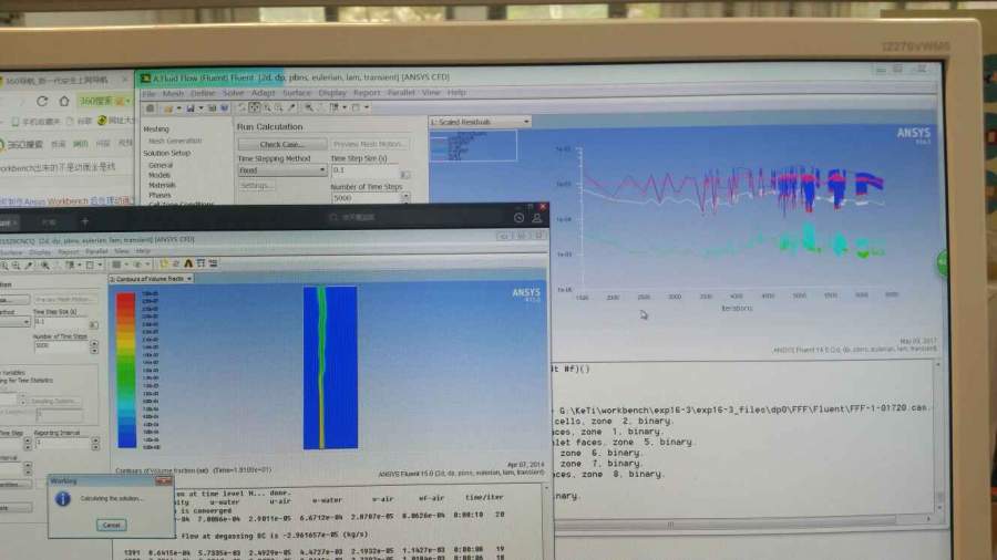 我按照视频做的鼓泡塔仿真计算,为什么点击Run Calculation中的Calculate之后就完全不一样了,视频中是鼓泡塔,我的却是好多线条,一个多小时了还没停下来,视频里没几分钟就好了,下面附图,大家帮我看看吧,谢谢了 发自小木虫Android客户端 |