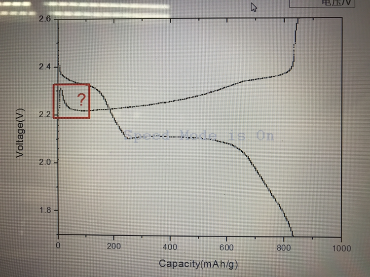 请问充放电曲线红色框里这个突出的尖是什么意思???