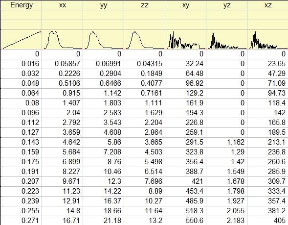 用vaspkit处理介电函数,得到吸收系数文件,用origin打开,得到的数据如下;xy、yz、zx分量不为0,x、y、z方向各不相同,接下来怎么出处理? 搜狗截图17年05月11日0853_1.jpg |