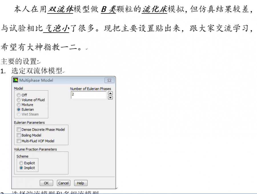 双流体模型模拟流化床