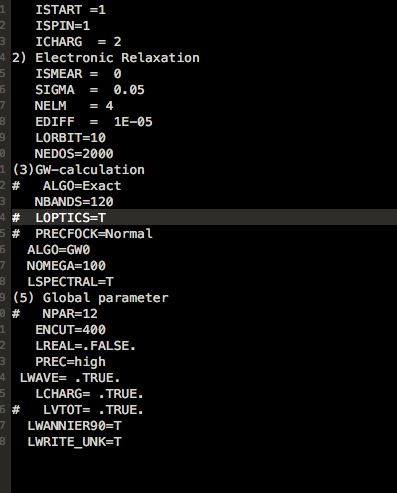 请教一下,用GW计算半导体的能带,前面两步正常进行,在第三步出现了如下的计算问题,我的INCAR如下,KPOINTS如下:是怎么回事呢? 屏幕快照 2017-05-15 下午1.35.56.png 屏幕快照 2017-05-15 下午1.36.15.png 屏幕快照 2017-05-15 下午1.30.58.png |