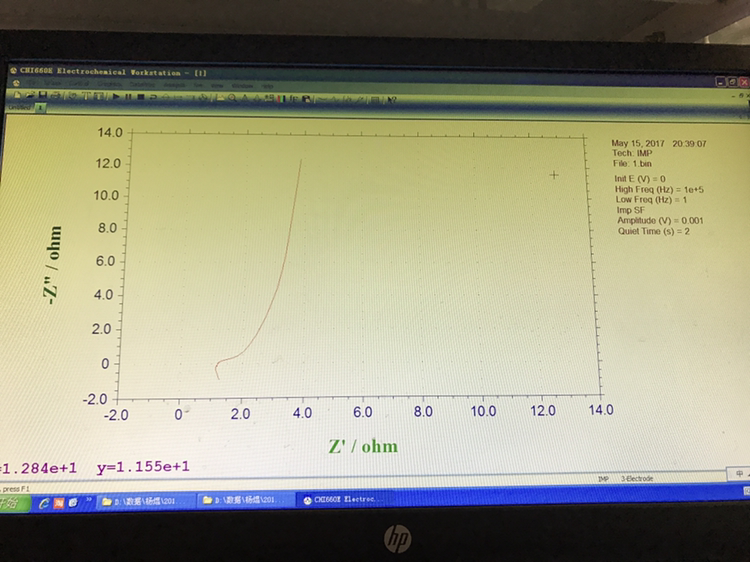 这是我测出来的阻抗图,条件是0.001到100000赫兹,0到1伏。我是做DSA电极用来处理废水的。这个图怎么和文献上两个半圆的不同呢?还有,怎么分析呢?