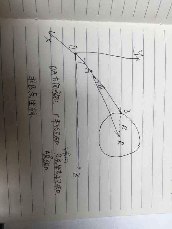 如图 已知OA矢量的的方向 A点坐标 AR的方向和长度 半径为r 求B点的坐标 场景:现在是一个小球碰到这个大球上 想求碰到大球的点坐标以确认反射之后的出射方向 发自小木虫Android客户端 |