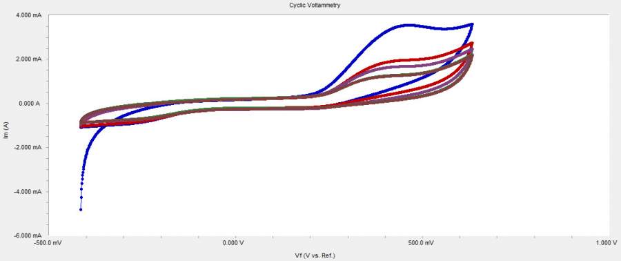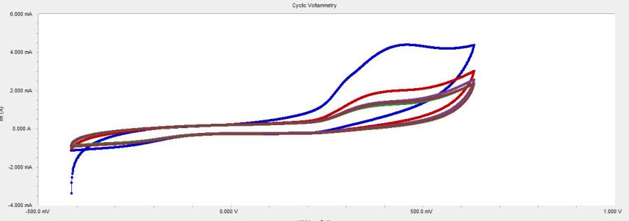用多孔金电极测尿酸的CV,随扫描次数的增加氧化峰降低是怎么回事?