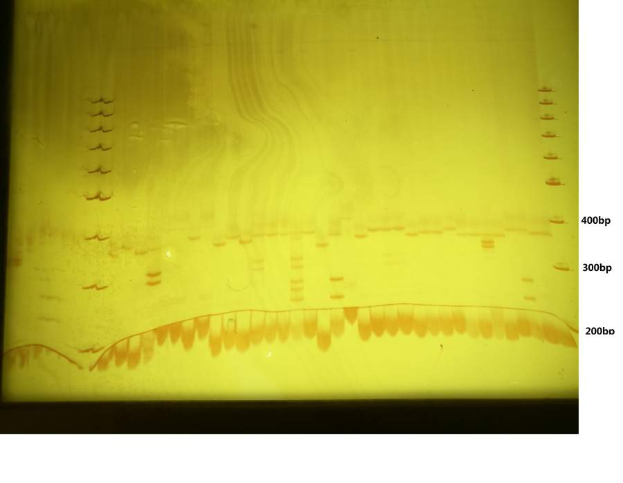 提取玉米种子DNA后PCR 变性后用4.5%的尿素聚丙烯酰氨凝胶在1300V 80W 跑胶45min 后 如下图情况:目的条带160~190bp 但是目的条带弥撒严重 无法读带 PCR用全世金的Mix 非特异性条带有点多 PCR如何改进?PAGE图上的目的条带要怎么调整跑胶条件? 求大神帮助!!! 玉米SSR.jpg |