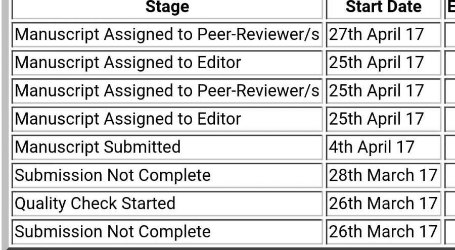投稿两个多月,20天前收到会送审的邮件,状态也变成assigned to peer_reviewer/s,但是current stage 一直是assigned to editor,昨天current stage 变成assigned to peer_reviewer/s,想问问大神们,什么情况,是刚送审吗,我看别人送审很快就有结果了啊 发自小木虫Android客户端 |