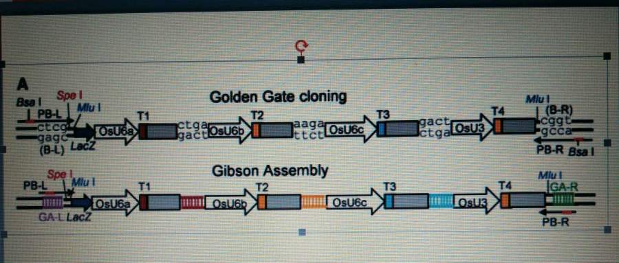 同时用多个SgRNA来进行敲除,下面两种构建SgRNA表达盒的方法是啥区别了?