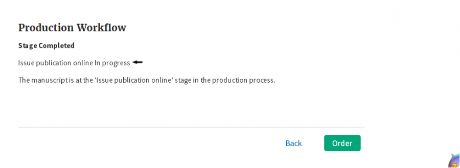 各位大虾们, 有一个疑问需要请教各位帮忙,我的文章在3月底接收,中间经过各种,如今有了DOI 号码,但是一直没有online,不知道是什么情况? 现在的状态是Issue publication online In progress , 底部有个绿色显示的order 按钮,不知道应该点进去呢还是继续等待呢? 哪位大神投稿该杂志的帮忙解惑啊,拜托! 图片1.png |