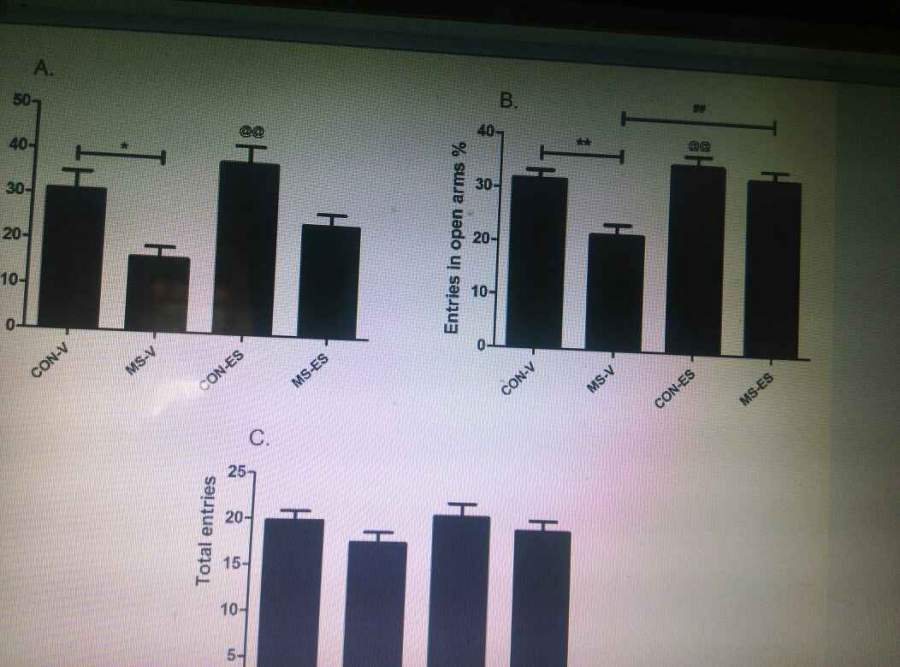 Related to this point, it's quite difficult to understand the labelling of the significance on the graphs - the labels for main effects don't seem to compare all conditions included in those statistics. ?It may be easier not to try to label main effects on the graphs themselves, and only use labels for the outcomes of the appropriate post hoc tests in case of an interaction effect. ? 请教一下各位,审稿人的意思是不是图里只标交互效应?那么没有交互效应的还用标上主效应吗?(图中交互效应我用的@表示,图注里说明了@是MS-V vs. CON-ES ) 发自小木虫Android客户端 |
