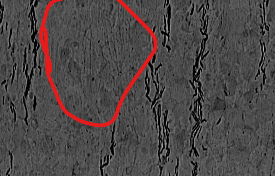 我这个是Zr-4合金,图中的粗的黑色条带状是氢化物,就是不知道红圈里的带状是什么,是滑移带吗?