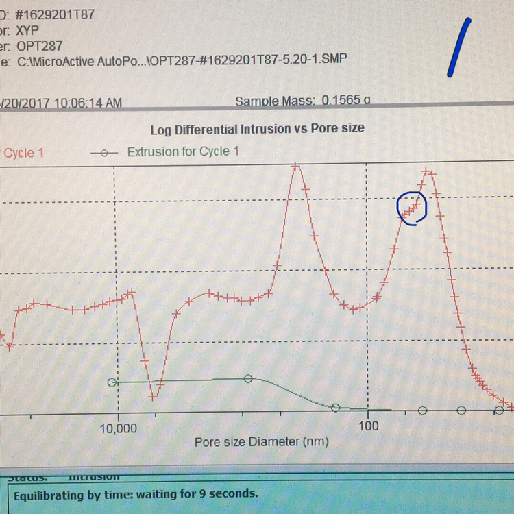 请教一下两张图圈出来的不同之处是因为什么原因造成的,可以用什么办法解决,是用美国麦克仪器Autopore9620做的,为什么峰不是顺滑的做下去而是出现小凸峰,求解,谢谢。 发自小木虫IOS客户端 |