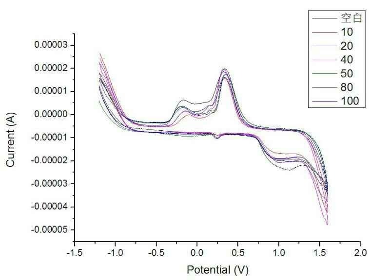 我的溶液中含有已知浓度的待检测药物,加入了磷酸盐缓冲溶液调节ph至7,然后进行CV扫描,扫出来的图长这样,有大神可以帮忙分析一下吗? 发自小木虫Android客户端 |
