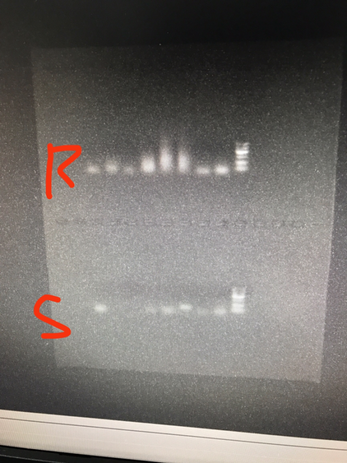 提取出的DNA浓度测量了一下是200-300ng/ul,温度梯度PCR以后的电泳图是这样的,第一行和第二行是不同类型的基因。Marker是右边的一排。 发自小木虫IOS客户端 |