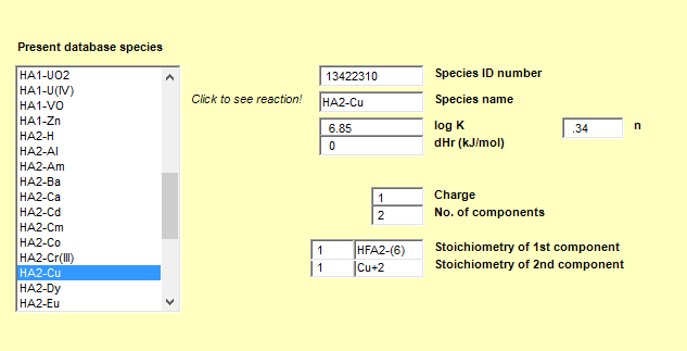 想请教下大神,使用MINEQL软件金属与有机质有络合反应,complexation datebase 中有一个HA1-Cu和HA2-Cu,应该选择哪一个?还是都要选?其中LOG k需不需要更改? C.png HA1-Cu.png HA2-Cu.png |