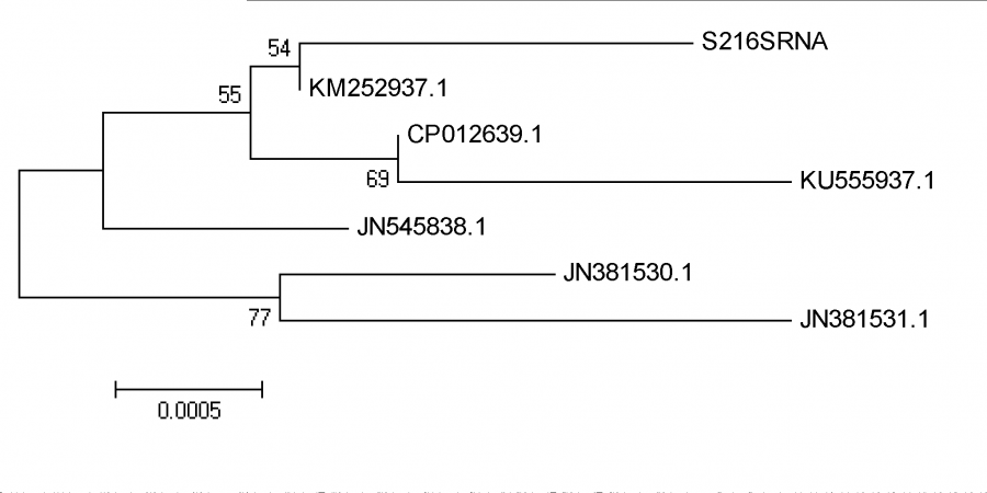 用16sRNA鉴定种属,blast后选了各种组合的序列构建进化树,分数都很低。该怎么办,大家帮忙看看。附件是我的16sRNA.能不能帮我画一个进化树吧,不甚感激!!!踢了很多序列做出来最好的就是图片中那一个了. 进化树3.png |