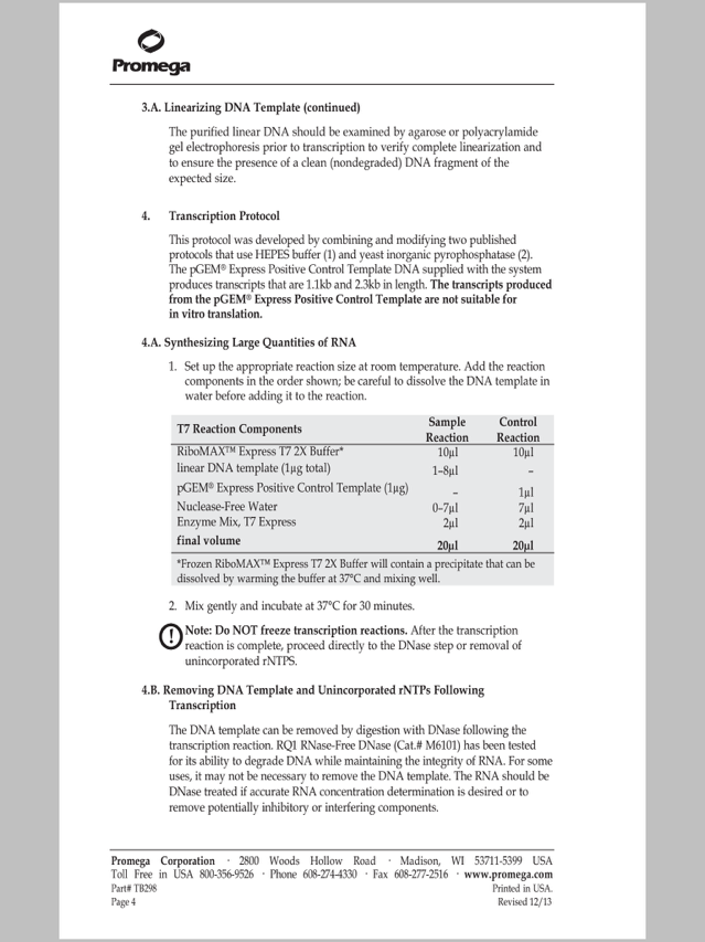 关于T7 RiboMAX? Express Large Scale RNA Production System