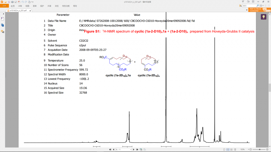 RT 咱之前是用mestrenova处理好,然后直接拷进去,但是老板说不行,要弄成pdf插入,然而咱做了以后发现导入的谱图都是糊的。是电脑本身显示的问题吗?还是被压缩了。 BTW有人说用苹果电脑可以直接合并是这样吗- - |