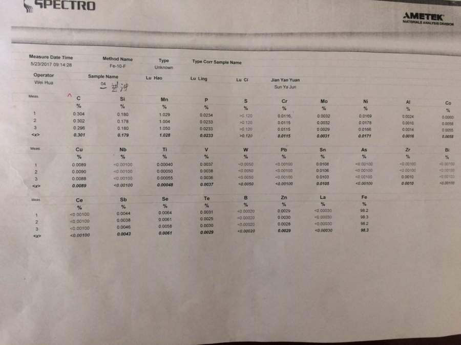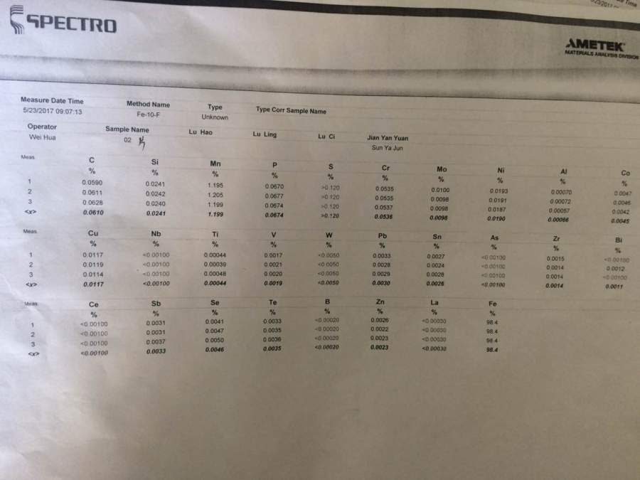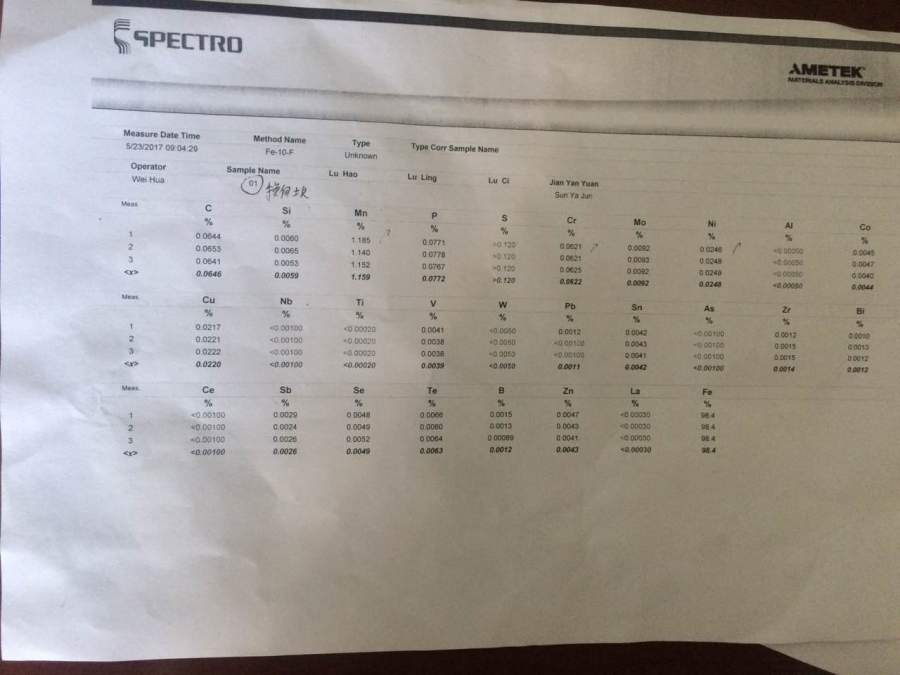 如题所示,同学就职的公司新开发产品,化验了一些部件的材料成分,寻求帮助看是什么样的材料