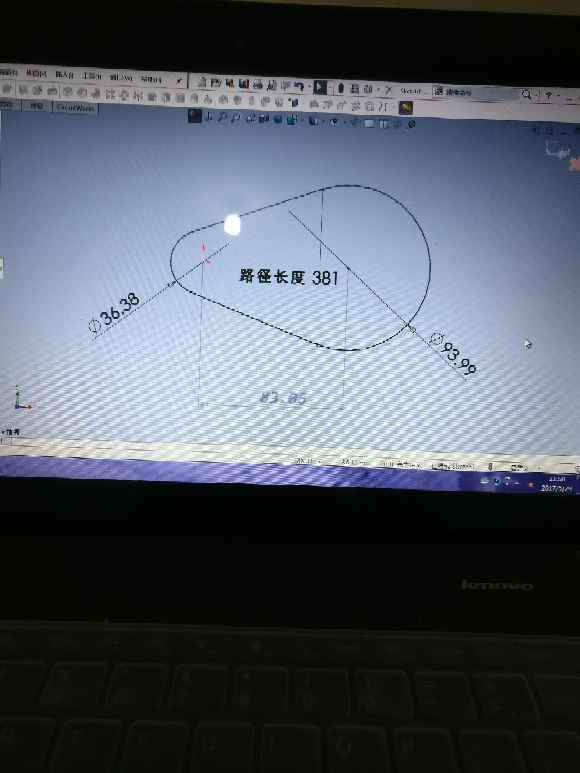 左侧直径36.38,右侧直径121.38,整个图形周长381求两个弧线中心距